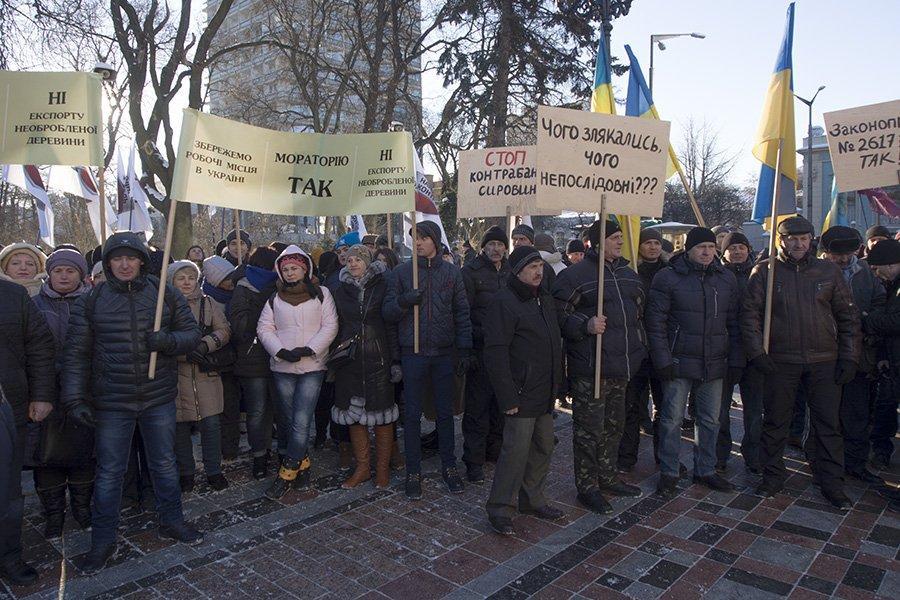 Под Радой начался протест против отмены моратория на экспорт леса-кругляка