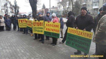 Нагадаємо, днем раніше, 12 грудня,у Луцьку під стінами прокуратури за участю працівників Маневицького лісгоспу та громадських діячів області відбувся мітинг на підтримку маневицького лісничого (на головному фото). Зі слів працівників лісгоспу, фабрикування справ проти Володимира Радіона робиться заради того, аби усунути його з посади та замінити на більш "зручного" для керівництва Волинського ОУЛМГ – а саме, начальника Олександра Квартирка та його заступників. Люди вимагали припинити свавілля Кватирка та усунути його з посади.