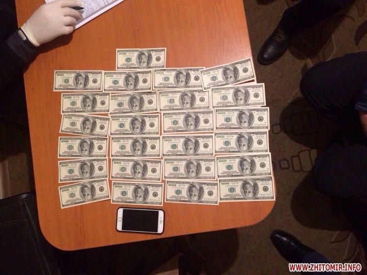 У Житомирській області прокуратура спільно із працівниками Служби безпеки викрили на хабарі 2500 доларів США посадовця управління облдержадміністрації.