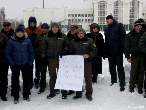 Близько 200 працівників лісгоспів Волині приїхали на акцію до приміщення Волинської обласної ради. Вони не згодні з рішенням ради щодо недовіри головному лісівнику Олександру Кватирку.