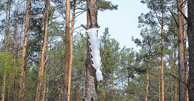 Феромонні пастки розміщують лише на ушкоджених деревах.