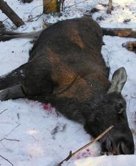 Учора ввечері лісівники натрапили в лісі поблизу села Хотівель Старовижівського району на мертвого лося. Одразу побачили – тварину застрелили з рушниці. Невідомі браконьєри встигли зрізати з туші найліпше м’ясо і покинули відходи хижакам.