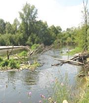 Тут, як кажуть, показове місце: і загата, яка змінює русло, міняє потік води, і розмивання берега. А ще й бобри добре попрацювали і поклали велике дерево поперед річки. Всі ці перепони треба ліквідувати – русло розчистити від завалів, берег укріпити. Коли дійде черга до цих робіт? В цьому році водникам з державного бюджету виділено 993 тисячі гривень. 160 тисяч вже отримали на травень, червень і липень. А решта, як планується, має бути в грудні.