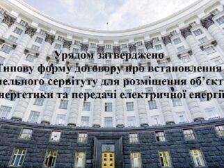 Урядом затверджено Типову форму договору про встановлення земельного сервітуту для розміщення об’єктів енергетики та передачі електричної енергії