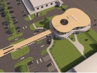 Первый в мире аэропорт в форме гитары построен из дерева, подаренного лауреатом премии «Грэмми»
