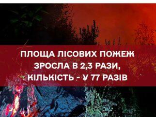 Кількість лісових пожеж у порівнянні зросла у 2,3 рази, а площа – у 77 разів