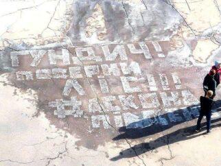 «Гундич верни лес». На асфальте перед стенами ОГА передали губернатору «привет». ФОТО