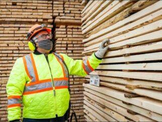 Дарси Эллиотт, начальник отгрузки на лесопильном заводе в Спрей-Лейк, осматривает пиломатериалы на предприятии в Кокране,…