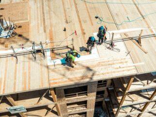 ADERA – Бригады работают над Adera Development’s Crest, деревянным сооружением из массивной древесины в Северном…