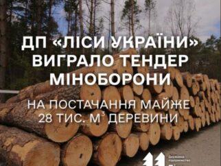 Юрій Болоховець: ДП “Ліси України” виграло тендер Міністерство оборони України на постачання майже 28 тис. м3 деревини.