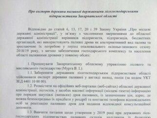 Голова Закарпатської ОДА підписав розпорядження «Про експорт деревини паливної державними лісогосподарськими підприємствами Закарпатської області», яким…