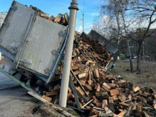 У Бучі перекинулася вантажівка з деревиною, на яку у водія не було документів