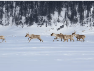 Лесной карибу из стада Пипмуакан (лесное озеро). Давление хищников и потеря среды обитания в значительной…