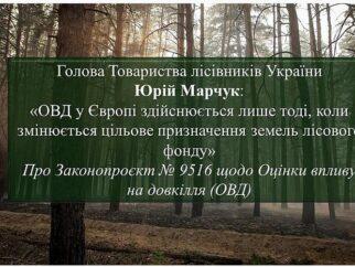 Голова Товариства лісівників України Юрій Марчук: «ОВД у Європі здійснюється лише тоді, коли змінюється цільове призначення земель лісового фонду». Про Законопроєкт № 9516 щодо Оцінки впливу на довкілля (ОВД)