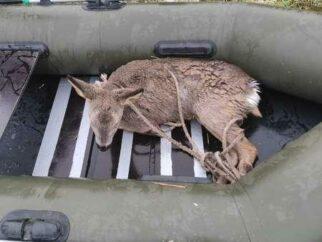 Біля Луцька чоловіки врятували козулю, яка провалилася крізь кригу і мало не потонула
