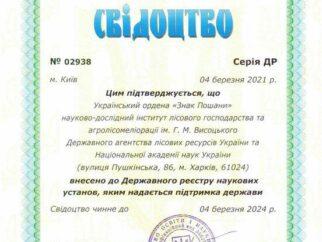 УкрНДІЛГА отримав свідоцтво про державну підтримку