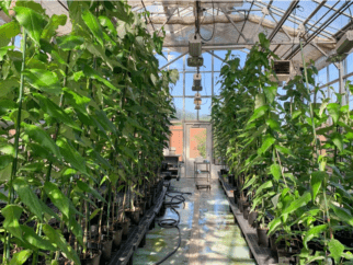Отредактированные с помощью CRISPR b контрольные образцы тополя дикого типа, растущие в теплице/ Фото Ченмин…