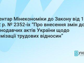 КОМЕНТАР МІНЕКОНОМІКИ ДО ЗАКОНУ УКРАЇНИ ВІД 1 ЛИПНЯ 2022 Р. № 2352-ІХ “ПРО ВНЕСЕННЯ ЗМІН ДО ДЕЯКИХ ЗАКОНОДАВЧИХ АКТІВ УКРАЇНИ ЩОДО ОПТИМІЗАЦІЇ ТРУДОВИХ ВІДНОСИН”