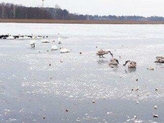 Працівники Прибузького лісгоспу намагаються врятувати лебедів і лисок, що залишились зимувати на озері Згоранське
