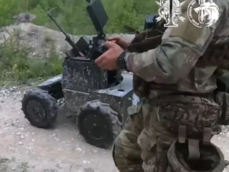 Робот ведет атаку на российские позиции через минное поле и ракетный обстрел
