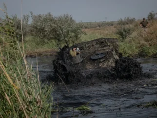 Бійці 33-ї механізованої бригади переходять річку вбрід під час навчань у Покровському районі минулого тижня.…