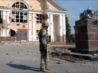 Украинский солдат осматривает поврежденные здания в Судже в контролируемой Украиной Курской области. Фотография: EPA Юмористы используют…