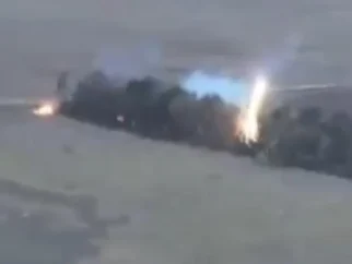 Этот распыляемый зажигательный материал можно увидеть, спускающимся с беспилотника МО Украины На видео, опубликованном в…
