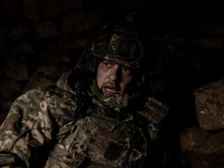 Украинский солдат укрывается от обстрела Вагнером возле Бахмута, восточного города, который киевские военные защищают в…