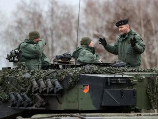 Польские инструкторы и украинские солдаты тренируются на танках Leopard 2 в Светошуве, Польша, 13 февраля.…