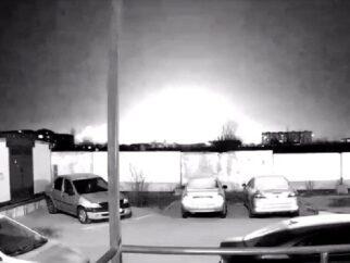 Кадры безопасности из жилого комплекса показывают взрыв на авиабазе Энгельс-2 недалеко от Саратова, Россия, в…