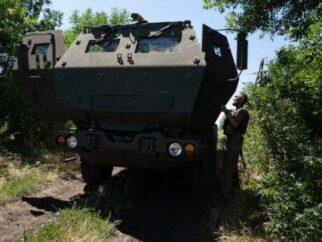 Украинский военнослужащий открывает дверь машины, оснащенной высокомобильной артиллерийской ракетной системой, на востоке Украины, 1 июля.…