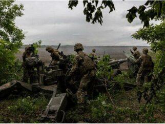 Украинский артиллерийский расчет замаскировал гаубицу американского производства в Донецкой области Украины в мае. Фото… Айвор…