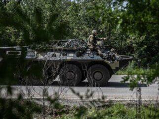 Украинский бронетранспортер движется в сторону Северодонецка в понедельник. Фото… Финбарр О’Рейли для The New York…