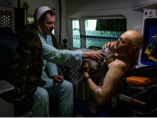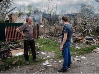 Жители Лимана, Украина, возле своего разрушенного дома в прошлом месяце. Фото … Ясуёси Тиба /…