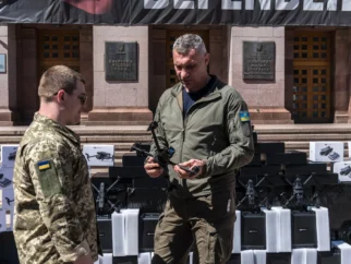 Мэр Киева, столицы Украины, Виталий Кличко перед зданием городской администрации в прошлом году. В течение…