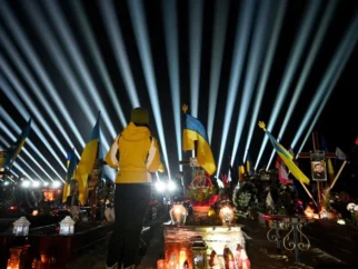 На этой фотографии изображена символическая иллюминация под названием «луч памяти» над могилами украинских солдат накануне…