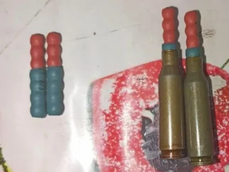 Картечь в термоусадочной упаковке (слева) и прикрепленная к патрону АК-74 вместо пули (справа) Российский Telegram…