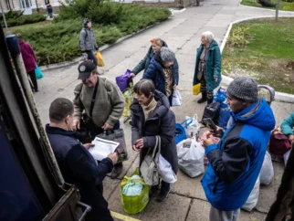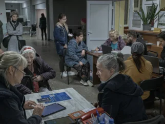 Украинцы в регистрационном центре в Сумах, Украина, после прибытия с оккупированных Россией территорий. Фото…Маурисио Лима…