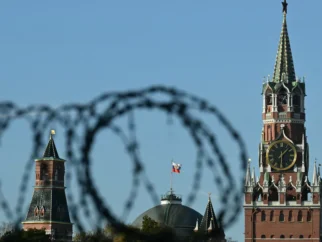 Штандарт Президента Российской Федерации развевается над Кремлем в Москве, символизируя присутствие Владимира Путина. У Украины…