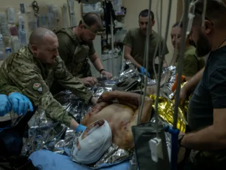 Врачи и медики 33-й механизированной бригады оказывают помощь тяжелораненому военнослужащему в стабилизационном пункте на востоке…