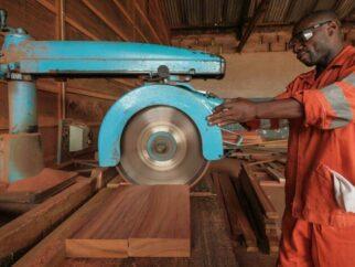 На фото: Обработка древесины на предприятии Compagnie Forestiere et de Transformation в Демократической Республике Конго.…