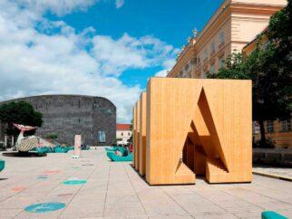 На фото: Эта конструкция олицетворяет превращение растущего дерева в деревянный дом. В настоящее время она…