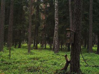 В Беловежской Пуще камера сняла куницу, которая лезет в скворечник