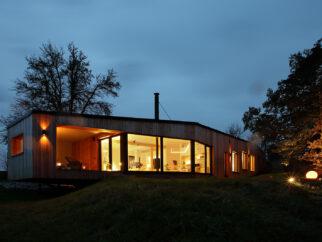 Семейный дом у леса копирует наклон земельного участка и сливается с природой