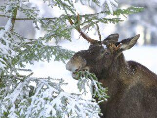 На фото: Взрослый лось съедает четыре-шесть хвойных деревьев популярных новогодних размеров в день. Каждый год…