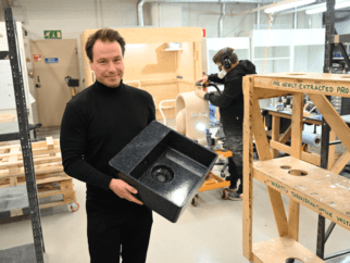 Генеральный директор Woodio Петро Лахтинен представляет самый известный продукт компании — мойку на основе дерева. Материал…