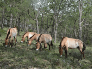 Табун из 10 лошадей Пржевальского прибыл из Франции в заповедник на Пиренейском нагорье в мае. Фотография:…