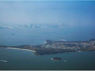 Вид на Южно-Китайское море между городом Сямэнь в Китае вдалеке и островами Цзиньмэнь на Тайване…