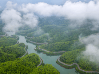 Аэрофотоснимок, сделанный 23 августа 2021 года, показывает пейзаж лесной фермы Сайханба в провинции Хэбэй на…