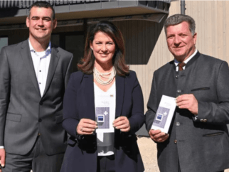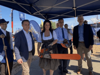 Министр лесного хозяйства Баварии Микаэла Канибер (в центре) с Флорианом Хоффманном, мэром Уттинг-ам-Аммерзее (слева) и…